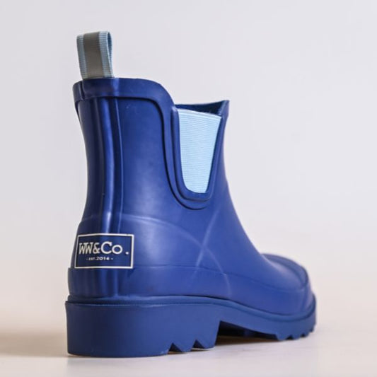 Blue Rubber Pull On Ankle Boots – Comfortable E-Fit Foot, Neat Ankle Fit